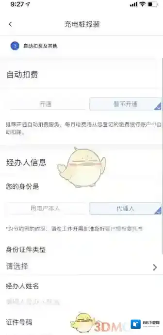 2、选“居民自用充电桩”-填入对应信息,车位产权证明可以参考先前作品模板