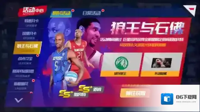 活动期间通过巨星招募获得全明星限定蒂姆·邓肯和凯文·加内特,可领取背景板“不动如佛”和光环“绿衫狼王”。