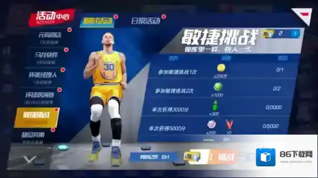 库里带来了他在球场上灵动无比的秘诀,进入活动后,界面中会随机出现不同颜色的格子,点击后会有不同的效果。各位经理人快来体验库里的敏捷挑战课程,以获得高积分为目标,活动你的手指,赢取惊喜奖励吧!