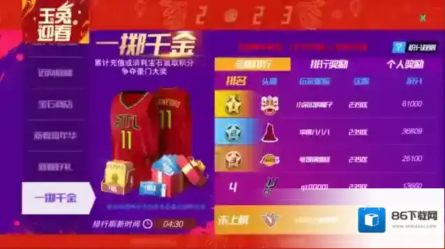 活动期间,充值和消耗宝石(消耗点券不计入),均可获得积分。积分达到一定档位,可获取丰厚奖励,积分全服前三,还可获取代言人特雷·杨亲笔签名球衣!