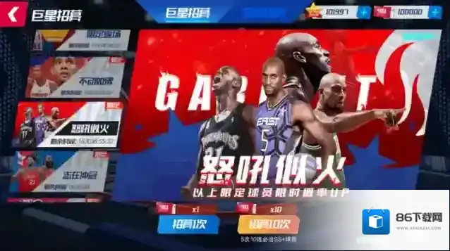 活动期间内,在“怒吼似火”球员池中,抽到新增全明星限定球员凯文·加内特的概率up!