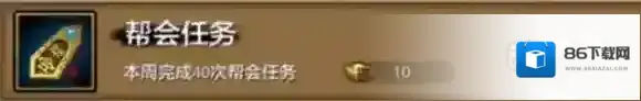 帮会任务,本周完成40次帮会任务,奖励帮会工资10绑定元宝。