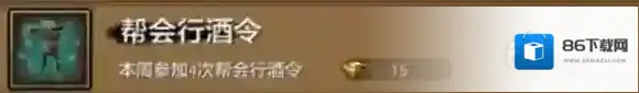 帮会行酒令,本周参加4次帮会行酒令活动。奖励帮会工资15绑定元宝。