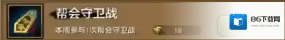 帮会守卫战,本周参与1次帮会守卫战。奖励帮会工资18绑定元宝。