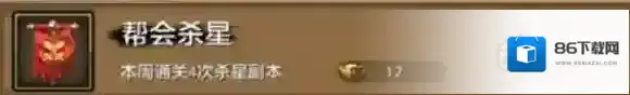帮会杀星,本周通关4次杀星副本。奖励帮会工资12绑定元宝。
