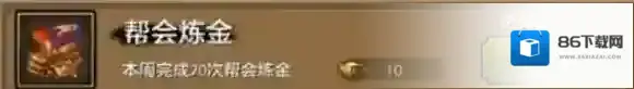 本周完成20次帮会炼金,奖励帮会工资10绑定元宝。