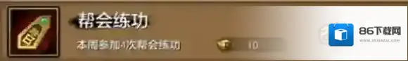 帮会练功,本周参加4次帮会练功。奖励帮会工资10绑定元宝。