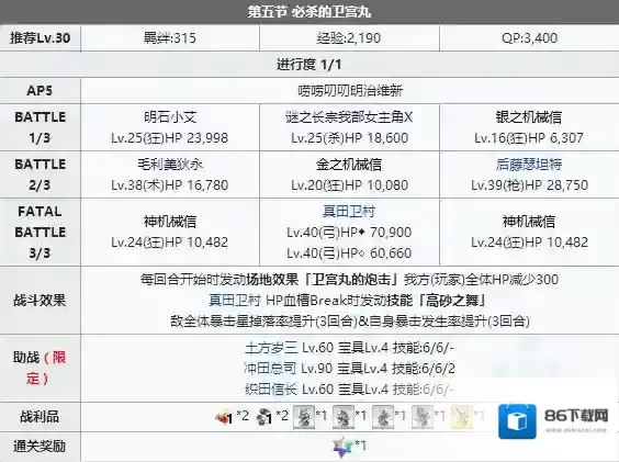 FGO明治维新复刻第五节配置攻略 主线本配置掉落介绍