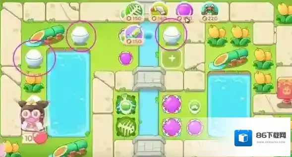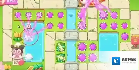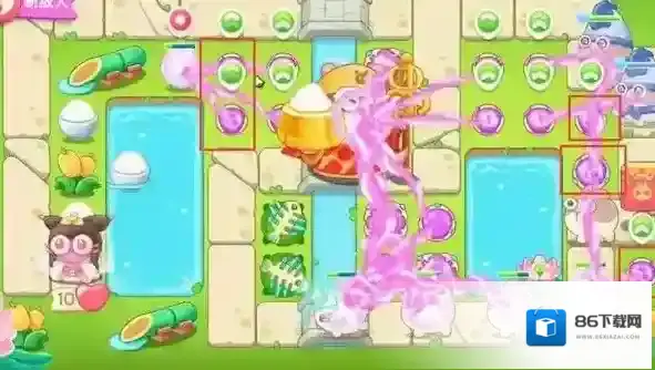 6、我们第四波开始把1魔法球升级,打米饭,放置2魔法球,右边图开后再放置两个魔法球,同时接着打附近道具。