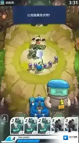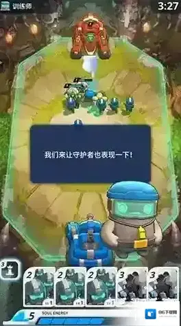 「战场」由我方阵地和敌方阵地组成,您派出的单位只能放在我方阵地中。挑选好卡牌并点击地面就能召唤出你的单位。