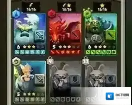 再往下就是卡牌布置部分了。一局游戏你最多可以布置6张不同的卡牌出站,但是只有前三排的卡牌可以释放技能。卡牌技能充能所需要的特殊筛面取决于卡牌的位置。左上位只能通过闪电充能,右上位只能通过星星充能,而中间位可以同时从两种特殊筛面获得充能!将更强力的技能放在中间位就可以让技能更快获得充能,也可以根据当前筛面统计将强力技能放在拥有更多筛面的一边。
