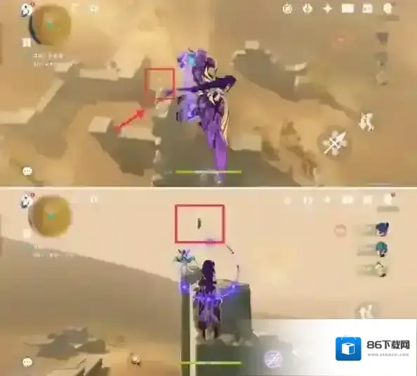 3.消灭怪物后,出现风场。面朝北方向,找到在遗迹顶部的未来星,在下图已标出。