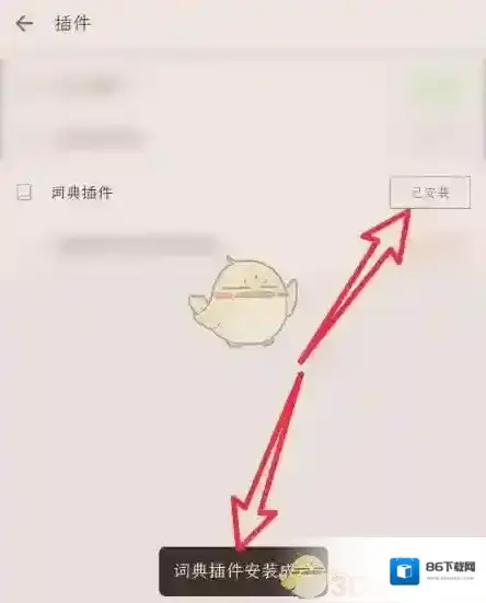 5、点击按钮就能开始安装词典插件,安装完成后,会有安装成功的提示