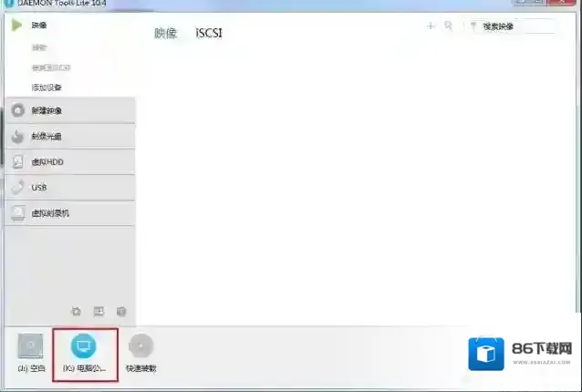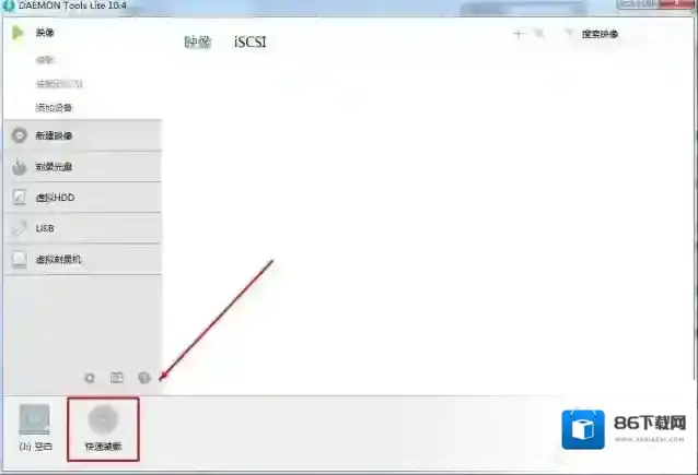 2、点击映像,然后点快速装载,如下图:(当然也可以从右上角先添加备用的镜像);