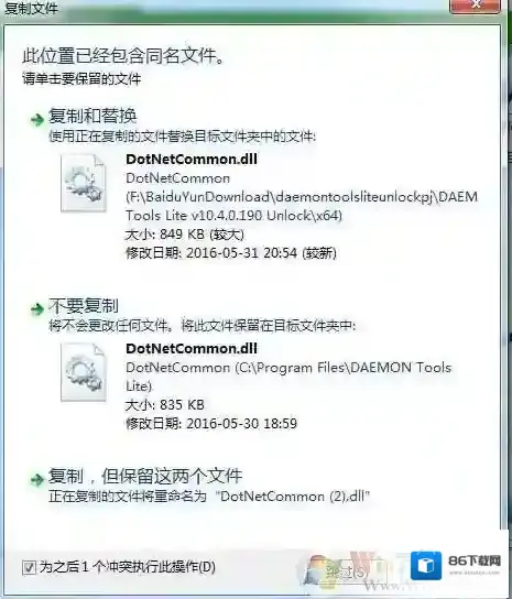 7、安装完成后,先不要运行,然后我们找到安装文件夹中的Win7X64 X32 按自己的系统版本选择,小编是64选择X64,进去复制文件,粘贴到daemon tools安装文件夹,小编的是C:Program FilesDAEMON Tools Lite 复制并替换