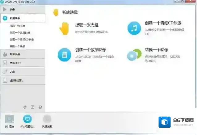 5、同时daemon tools lite还有更多的功能,如提取光盘镜像 创建CD镜像、刻录镜像、虚拟HHD、虚拟刻录机等