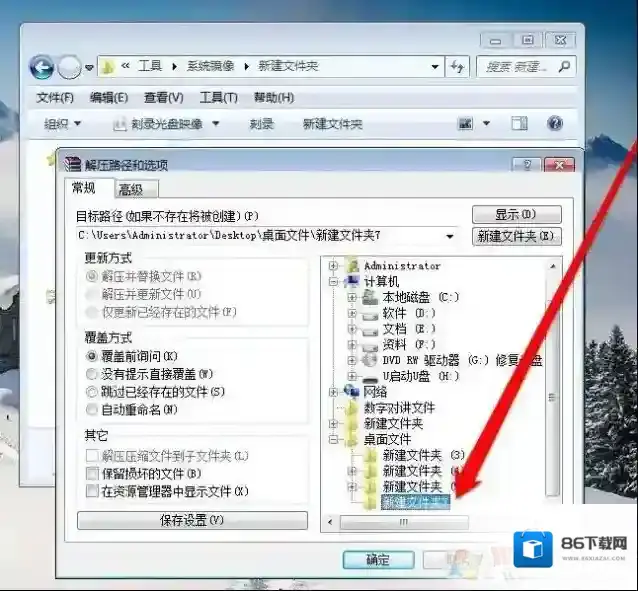 7、选择完成后,点击确定按钮进行解压文件;