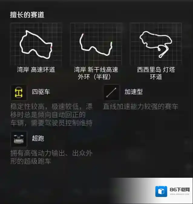 小极开过之后,自己比较喜欢的改装方向为:引擎-极速调教、轮胎-硬胎、电控-保守倾向、底盘-赛道悬挂、车身-低重心设定。保持车辆的最佳动态,将助你在成为车王的道路一臂之力。