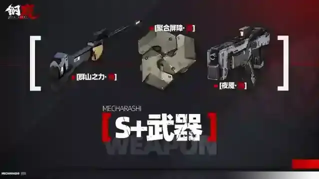 2、新增三把S+武器:群山之力· 改、聚合屏障· 改、夜魇· 改,可在「武器生产」中获得,基础属性提升,特性负载端口+1,携带一个固定被动技能;