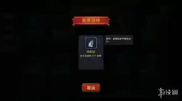 前期较为有用的遗物,毕竟前期叠加叠不动,怪攻击也低,靠这个遗物能少掉一点血是一点。