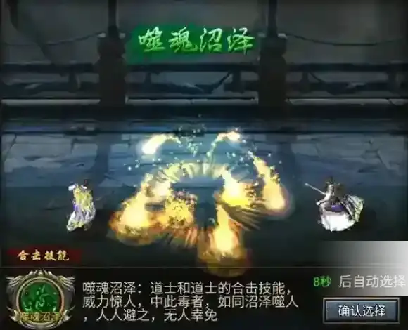 道士和道士的合击技能,威力惊人,中此毒者,如同沼泽噬人,人人避之,无人幸免!