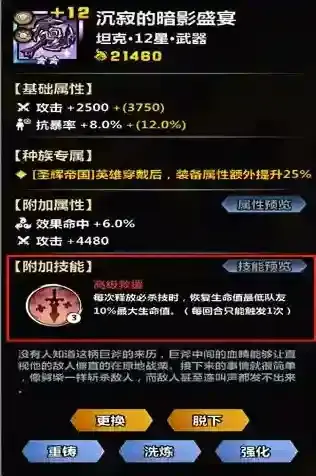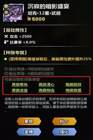 2、装备技能在装备强化至+12后会在以下装备技能中随机获得1个