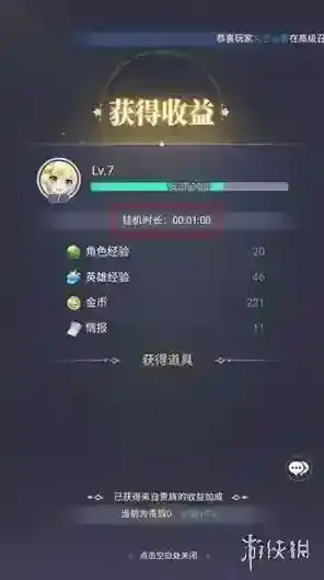 5、闯关结束后,不要忘记返回主界面领取挂机宝箱,通关越多、挂机时间越长,奖励就会更加丰厚。
