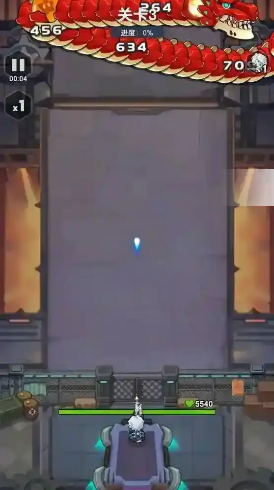 2、进入关卡后巨龙会慢慢向你靠近,角色会自动发射子弹,你可以移动角色来攻击巨龙。