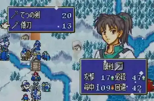 本作依旧延续了系列经典的战旗玩法,武器分为了剑、枪、斧、弓、理、暗、光、杖八种,根据职业的特性使用的武器也会有所不同,属性之间也是各有特点。并且游戏还可以通过GBA通信功能实现2-4人练级进行对战,让游玩的体验更加丰富有趣!