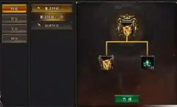 二、合成系统说明:合成系统可从游戏右下方合成入口进入。合成系统初始只有四部分,分别是特戒、异宝、生肖、神饰。