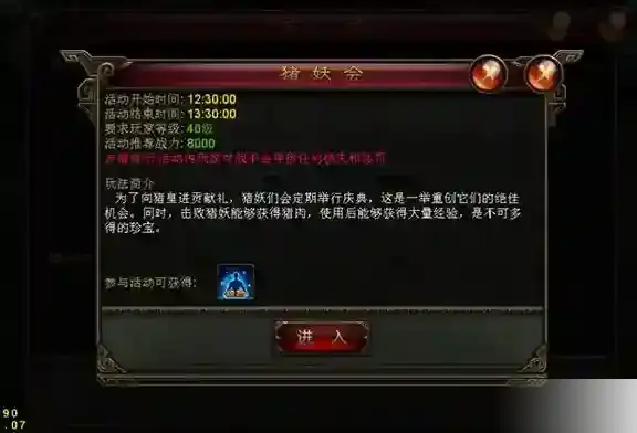 ③每日活动:每日中午12:30到1:30开始的猪洞活动,击杀猪王或猪皇可获得大量的猪肉,使用猪肉可获得大量经验奖励。