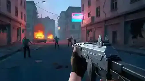 游戏将会以关卡的形式进行,每一关中我们要拿起武器进行射击,将出现的每一个僵尸全部消灭,然后不断的前进,直至消灭所有敌人后即可过关获得奖励,并且随着关卡的深入,我们将会解锁更多丰富的武器,强化自己的火力!