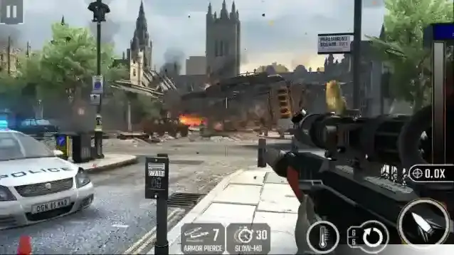 2、进入场景后,根据场景任务不同,我们会使用不一样的武器,例如狙击枪,拉动右侧按钮即可瞄准。