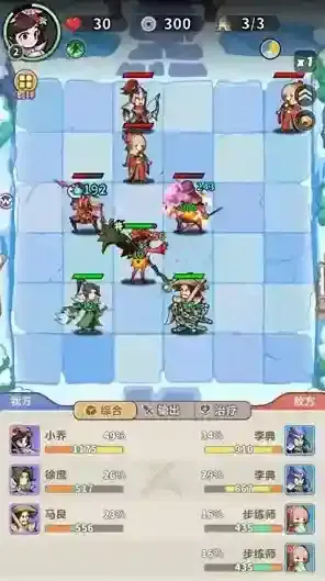 2、进入关卡后需要先选择一位初始将领,然后将武将放在棋盘上点击战斗按钮开始闯关。