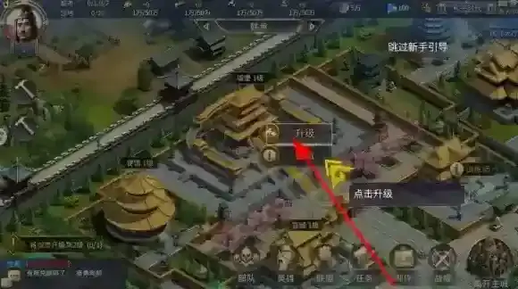 2、进入游戏后,对城堡进行升级,点击城堡上的升级按钮,提升城堡等级,以此解锁更多功能与资源,增强自身实力。