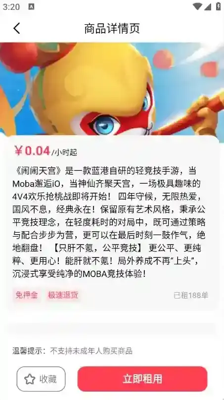 4、点开需要的游戏账号进入,点击“立即租用”即可。