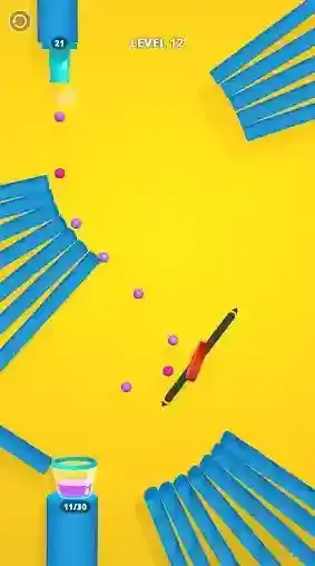 7、例如新的关卡中,需要进行不同的调整,让小球继续掉落到杯中。