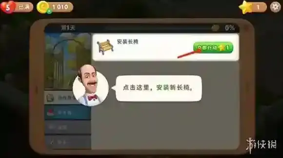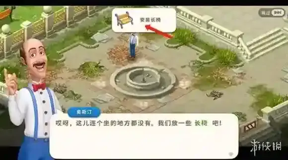 2、出现游戏任务了,我们需要在公园安装长椅,继续点击屏幕。