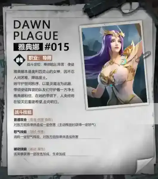 她守护世间秩序,以星灵魔法为武器,带领使徒阵营的队友们守护着一方净土。雅典娜相信,在她的带领下,人类终将在毁灭后重建希望,走向明日。
