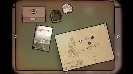 24、潜水艇—操作台视角:先不急着去那个新坐标,去完成成就(嫌麻烦的可以直接前往“X:11、Y:5、D:30”);点击小桌板查看地图,接下来我们要去教堂“X:2、Y:7、D:00”、湖畔小屋“X:6、Y:6、D:00”和旅馆“X:6、Y:3、D:00”。