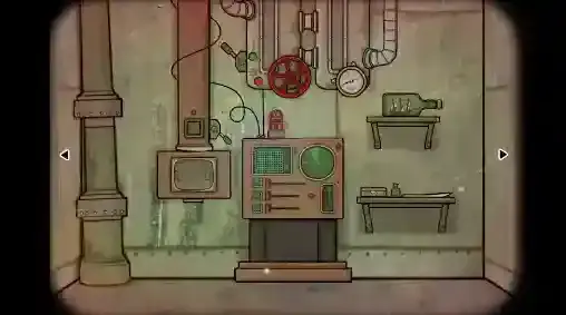 13、潜水艇—操作台视角:点击分析装置,提起开关将黑方块送入分析装置;点击装置中的黑方块,屏幕上出现了劳拉;背景被分为五块,以最上方的一块为基准,左右移动下面的四块块背景,拼出“There will be blood/血色将至”,完成之后屏幕里的劳拉拿起小刀自杀后变成了小黑,再次点击屏幕后获得(黑方块)。