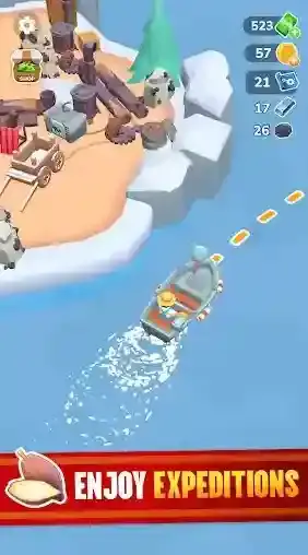 1、游戏中拖动屏幕即可移动角色进行移动,砍伐树木获得资源。