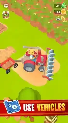 随着区域的不断解锁,我们将会体验到更多内容丰富的玩法,并且还会得到各种类型的农作物,通过种植来获得大量的钞票!通过努力的经营让自己的小农场慢慢发展成为大型农庄,成为真正的农业大亨!