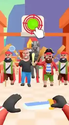 2、开始关卡之后,我们需要利用手中的飞刀来击中对面的歹徒,注意不要伤害到人质。