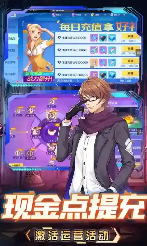1.上线送万元充值,充值比例1:1000,直接白嫖升满V,0氪也能当大佬。