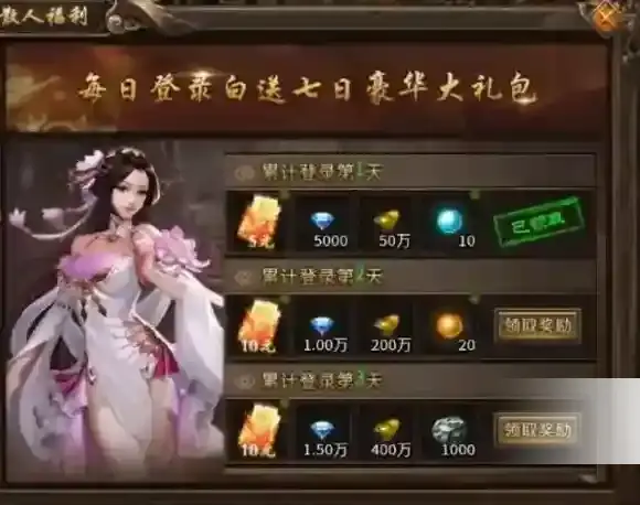 6、开启散人福利,每天登录白送七日豪华大礼包等