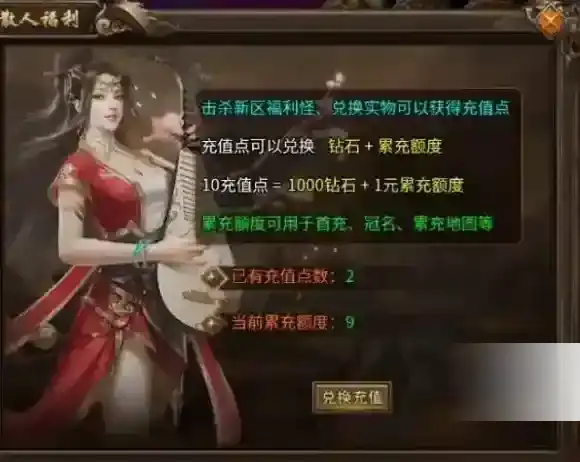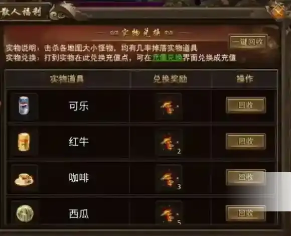 实物兑换:打到实物在此兑换充值点,可在充值兑换界面兑换成充值