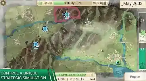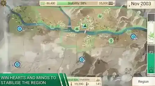游戏中玩家们将会来到自己选择的区域当中,成为这里临时的治理者,通过建设民生、发展政府项目来发展该区域,获得人民们的支持,提高自己的声望;同时还要去训练军队,建设防御设施,消灭一切妄想占领该区域的反叛军,保持地区的稳定性。游戏的可玩性和策略性十足,体验起来非常的精彩!
