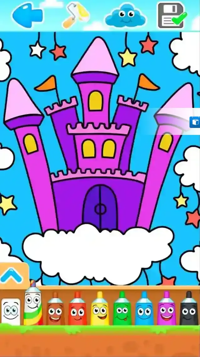 涂色关卡中包含不同的画作,孩子们可以逐步解锁,并收藏已完成的作品。
