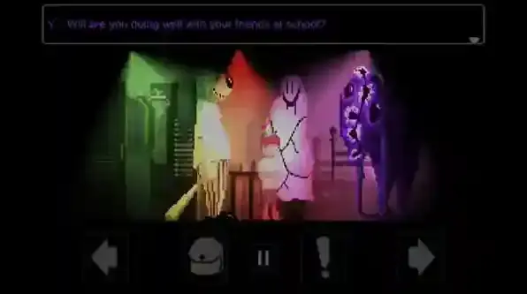 2、正式开始后屏幕下方的左右箭头可以控制角色移动,感叹号是进行互动和推进剧情。
